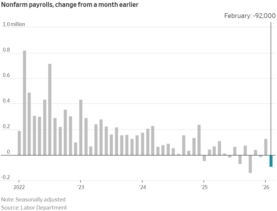 The US lost 92,000 jobs in February according to Friday's report from the Labor Department. The expected number was a gain of 50,000, so the actual results were very disappointing but reflects just how muddy the picture is when observing the state of the economy. Throw the Iran war in to the mix, and things get even murkier. In a vacuum, a weak jobs report might lead one to believe the Fed will be quicker to cut rates. However, current Chair Jerome Powell has been publicly bashed by President Trump for being too slow to reduce interest rates, and with only a few months remaining in his position, he may be unlikely to push for a rate cut at one of his final two Federal Open Market Committee (FOMC) meetings. The path to a rate cut looked to be clearing for incoming Chair Kevin Warsh, but with oil prices spiking in light of the Iranian conflict, the concern shifts from a weak labor market to a possible reacceleration of inflation. When oil prices rise, there exists the potential for costs to rise as an after effect. If inflation were to pick up, it could force the Fed (even one led by a Trump appointee) to take a rate cut off the table despite weakness in the labor market. The odds of a rate cut by June have decreased from over 70% a month ago to just 33% today.
