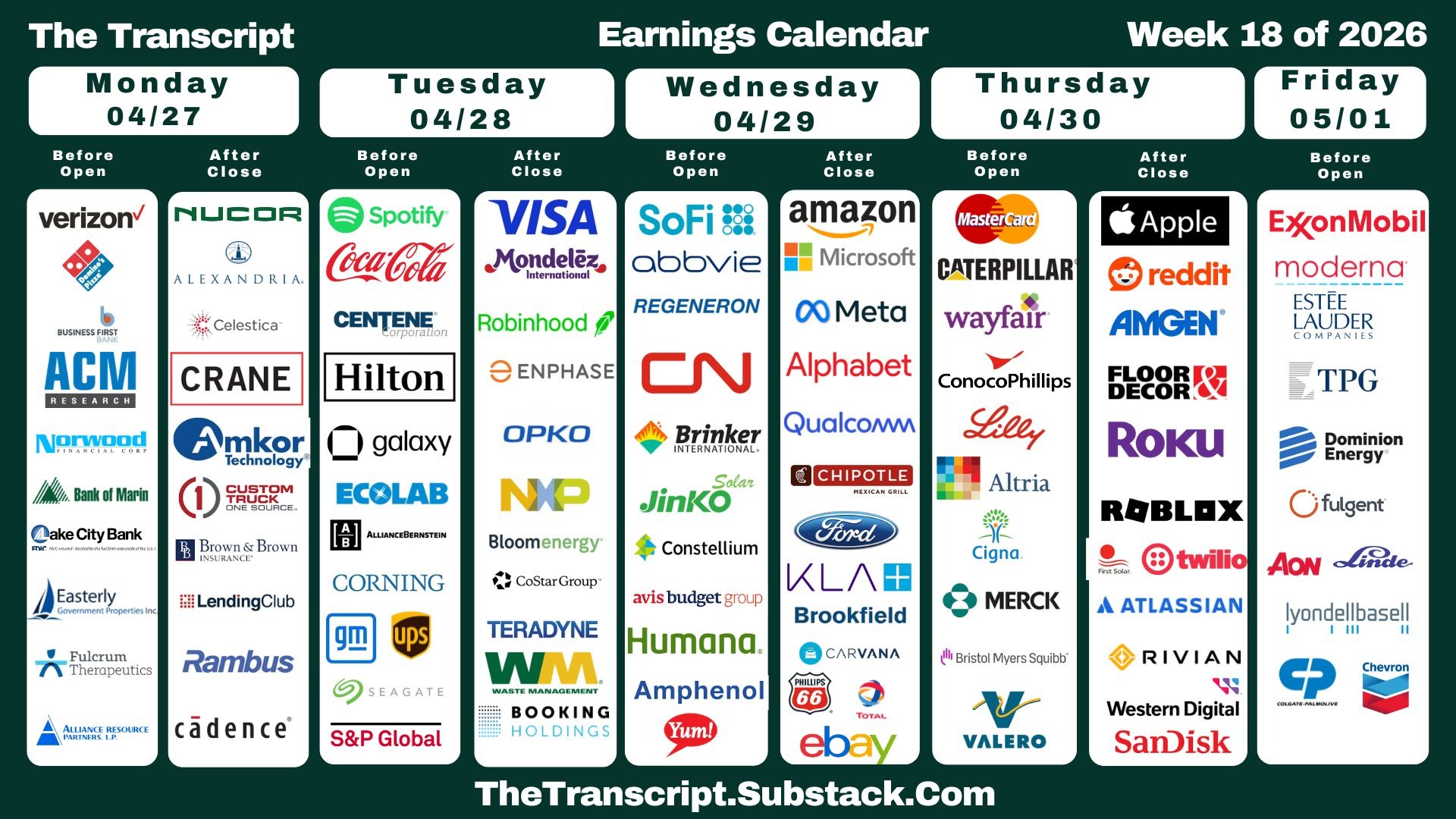 There will be much more to discuss on the economy next week as the Fed meets and announces its decision with respect to interest rates, we'll get an estimate on the GDP numbers for the first quarter and be watching for what, if any, impact the Iran war had, and another look at inflation with the Fed's preferred gauge, the personal consumption expenditures index.